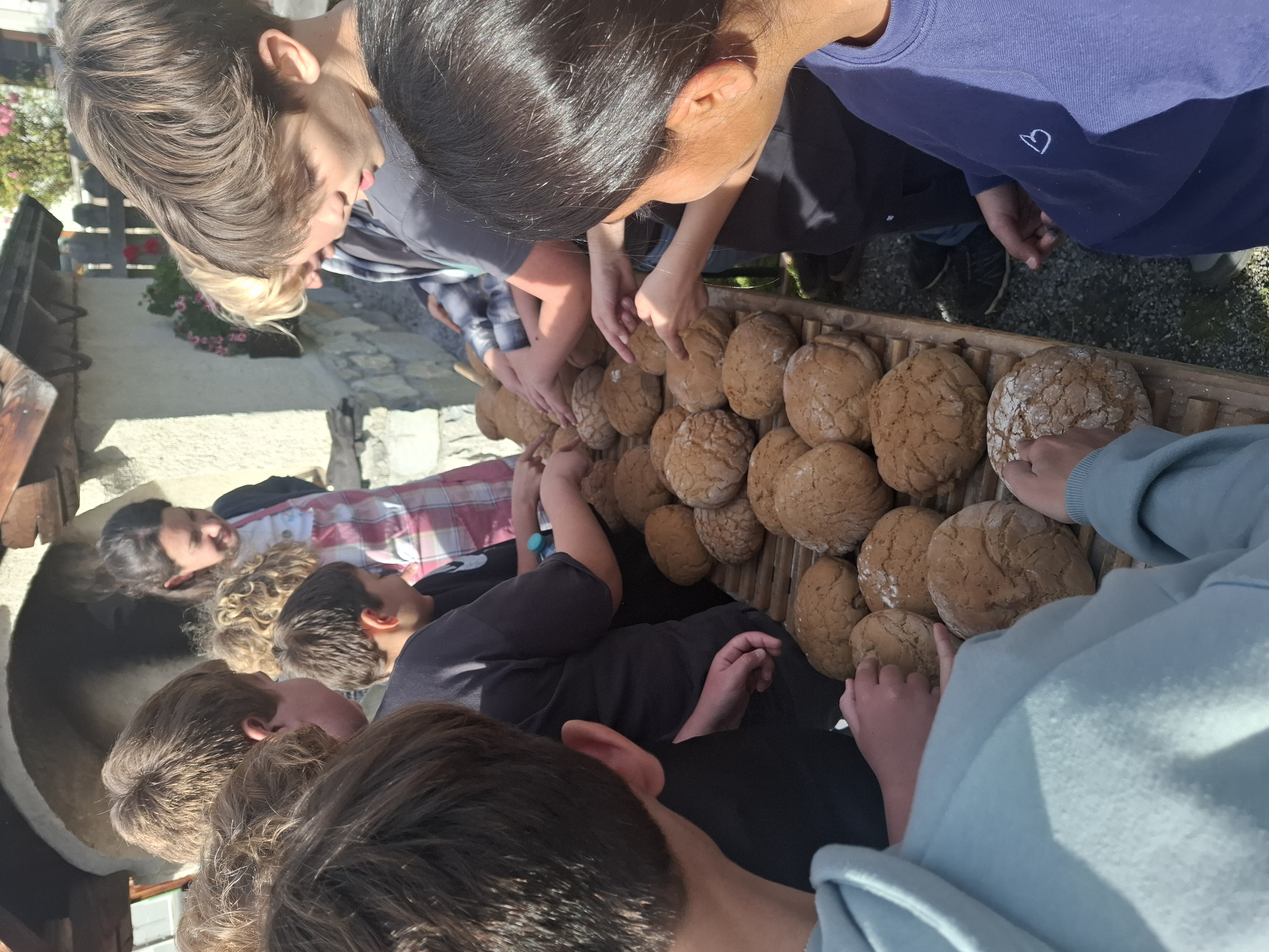 Im Rahmen des MINT-Unterrichts backten unsere Schüler*innen der 2. Klassen ein Brot beim Hinterhofbauern. Sie lernten, aus welchen Zutaten ein Brot besteht und wie wertvoll unsere Lebensmittel sind.