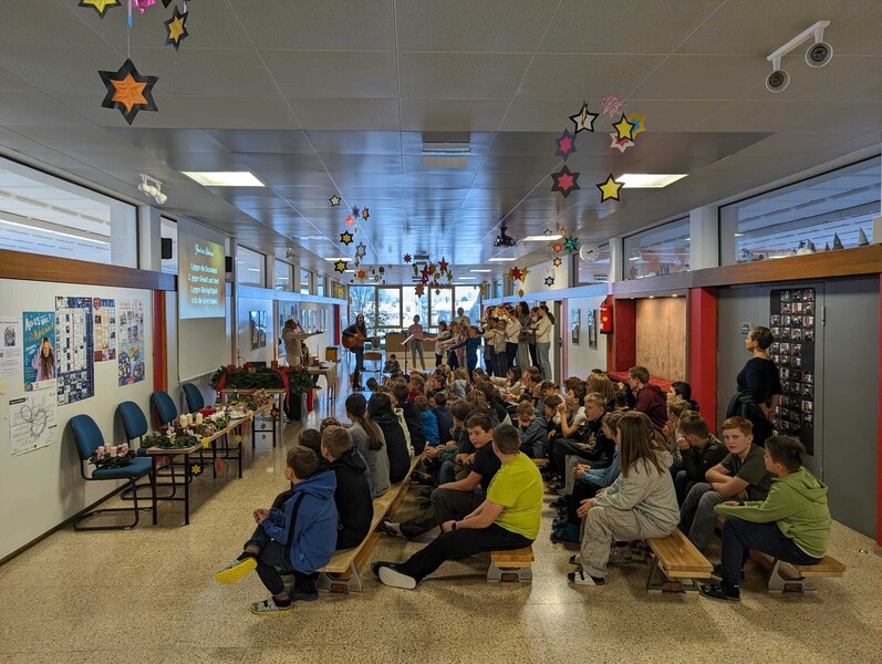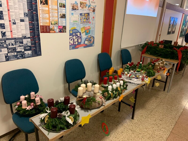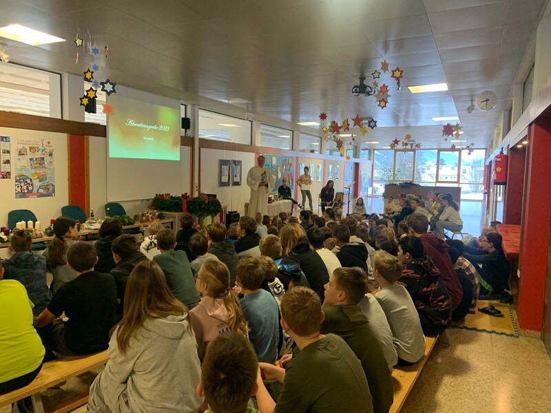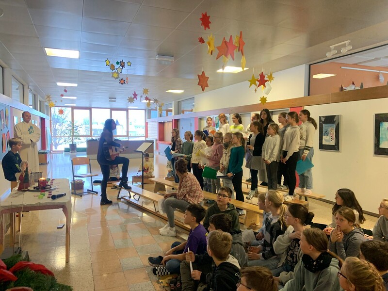 Im Zuge der alljährlichen Adventkranzweihe weihte unser Diakon die Klassenadventkränze und unseren Schuladventkranz. Die Feier wurde mit Liedern und Texten der 1. Klassen besinnlich umrahmt.